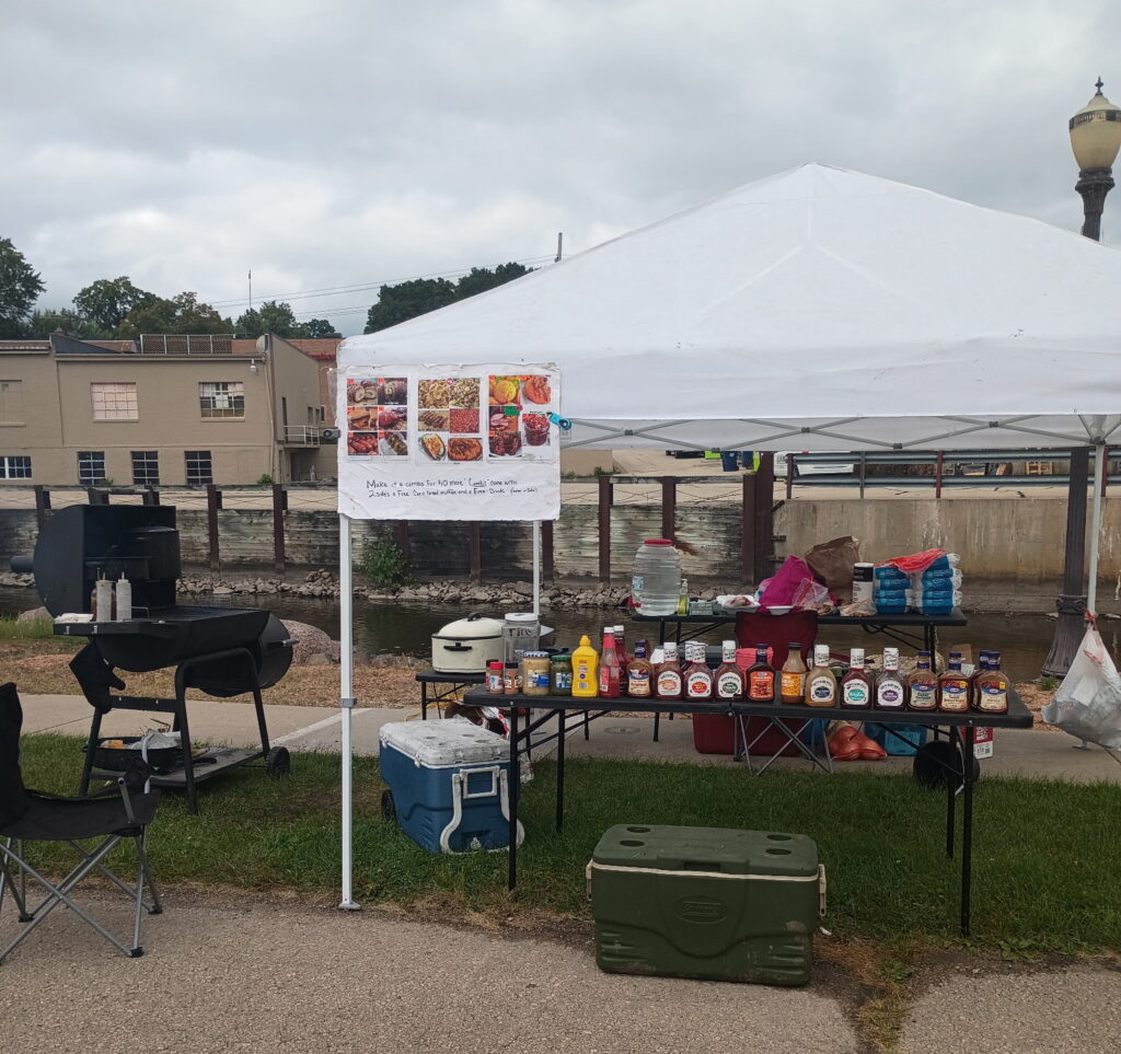 Operating with a small backyard grill, she said she can feed about 400 people in three to four hours, but a larger grill would allow her to serve more customers more efficiently.