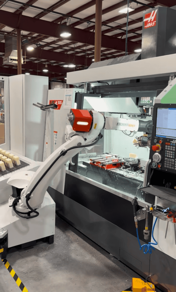 “We still have to program the machine and make sure it’s running correctly, but we don’t have to have an operator standing there loading parts or taking them out of the machine,” he said. “It’s basically doing the work of a person. We’re still experimenting with it to see what it can do.”