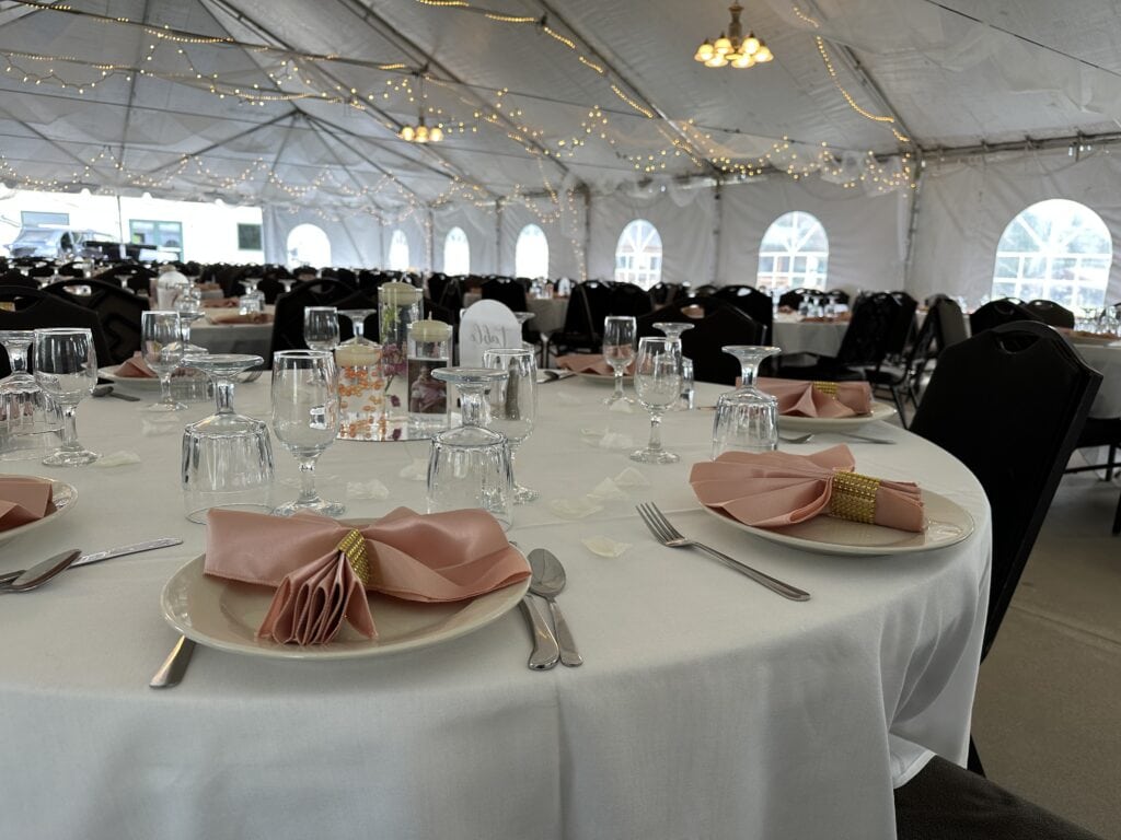 “The white wedding tent provides a lovely outdoor setting with all the indoor amenities,” he said. “We host outdoor weddings and receptions in it, along with many golf outings as well. We also have a Grand Ballroom attached to our main bar room that can hold up to 325 people, where most special events take place.”